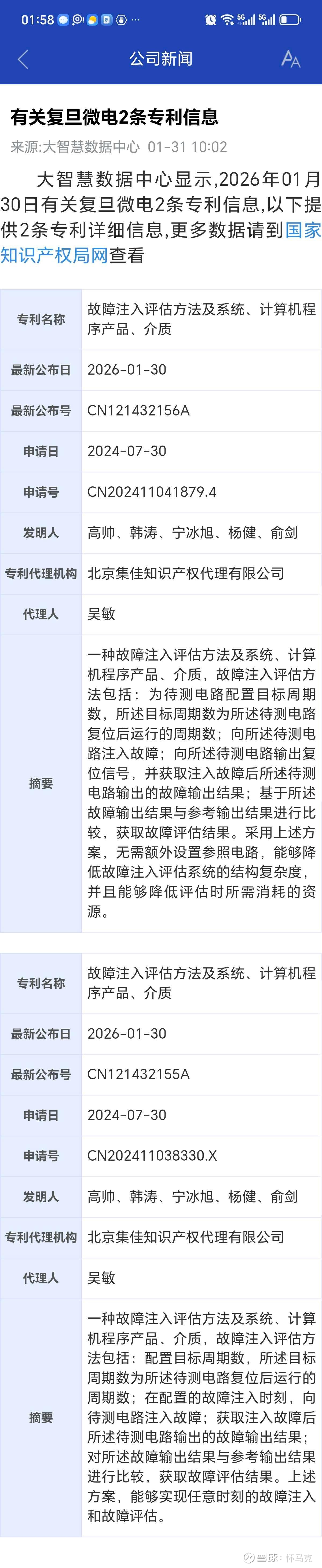 2026年1月30日,公司公布2条核心专利:
