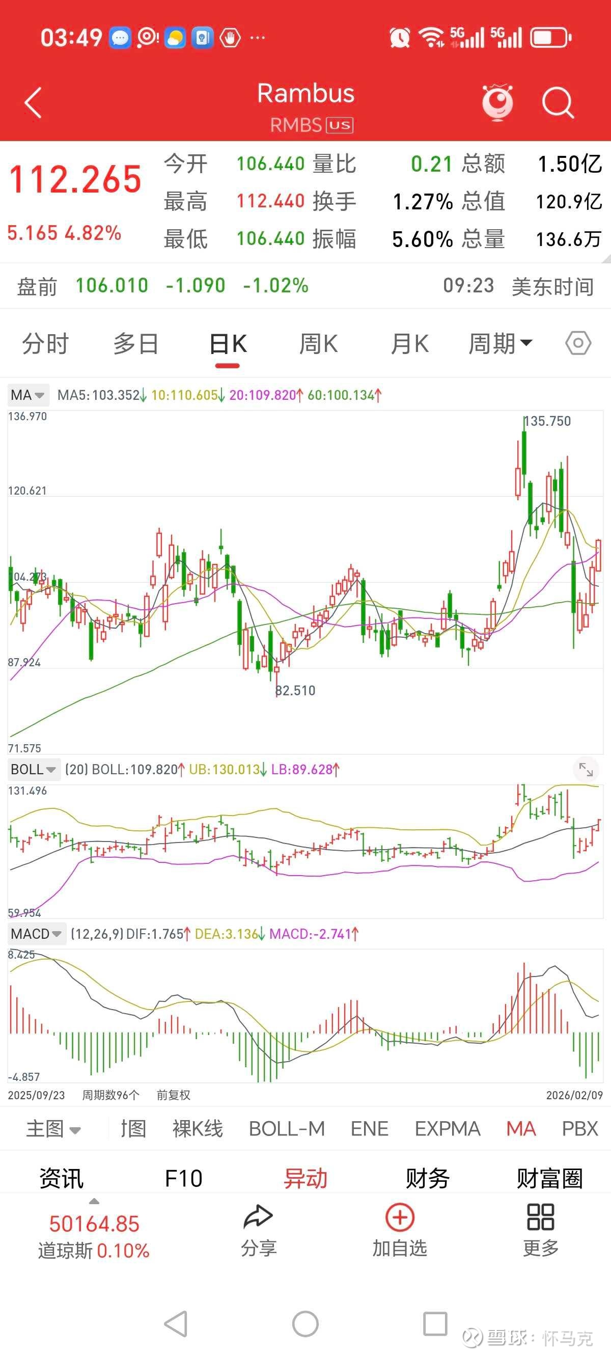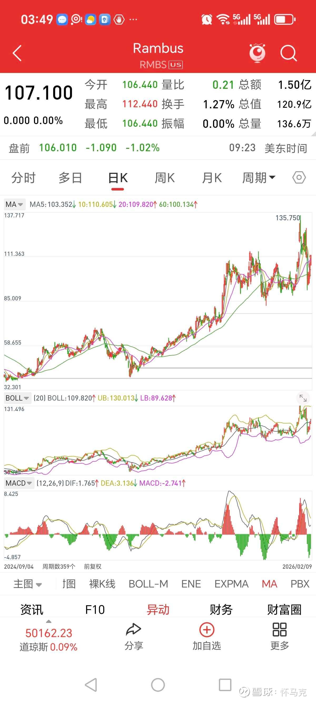 2024年全年,Rambus股价从40美元附近震荡上行,站稳80-100美元平台,全年实现翻倍。2025年全年,受益于DDR5渗透率爆发、AI服务器放量、全球市占率持续提升,公司股价从90美元一路拉升至135.75美元历史新高,一年涨幅超130%,彻底站稳百元美金区间,成为全球半导体高壁垒标的标杆。