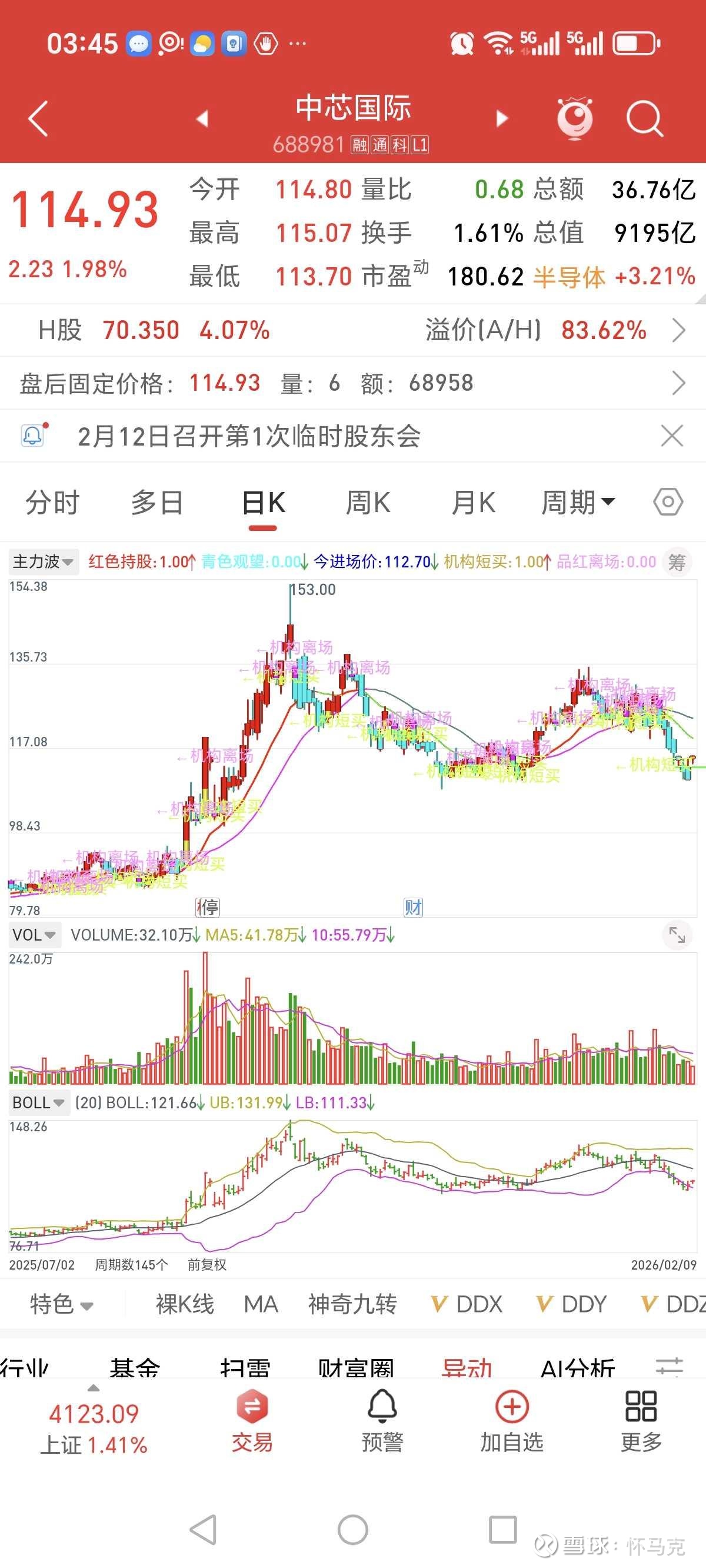 当前资金格局以机构波段操作、赛道轮动资金、散户换手共同主导,无绝对控盘主力。资金行为以高抛低吸、区间博弈为主,对半导体板块情绪、消息面、业绩预期敏感度极高,属于典型的硬核科技赛道股交易特征。