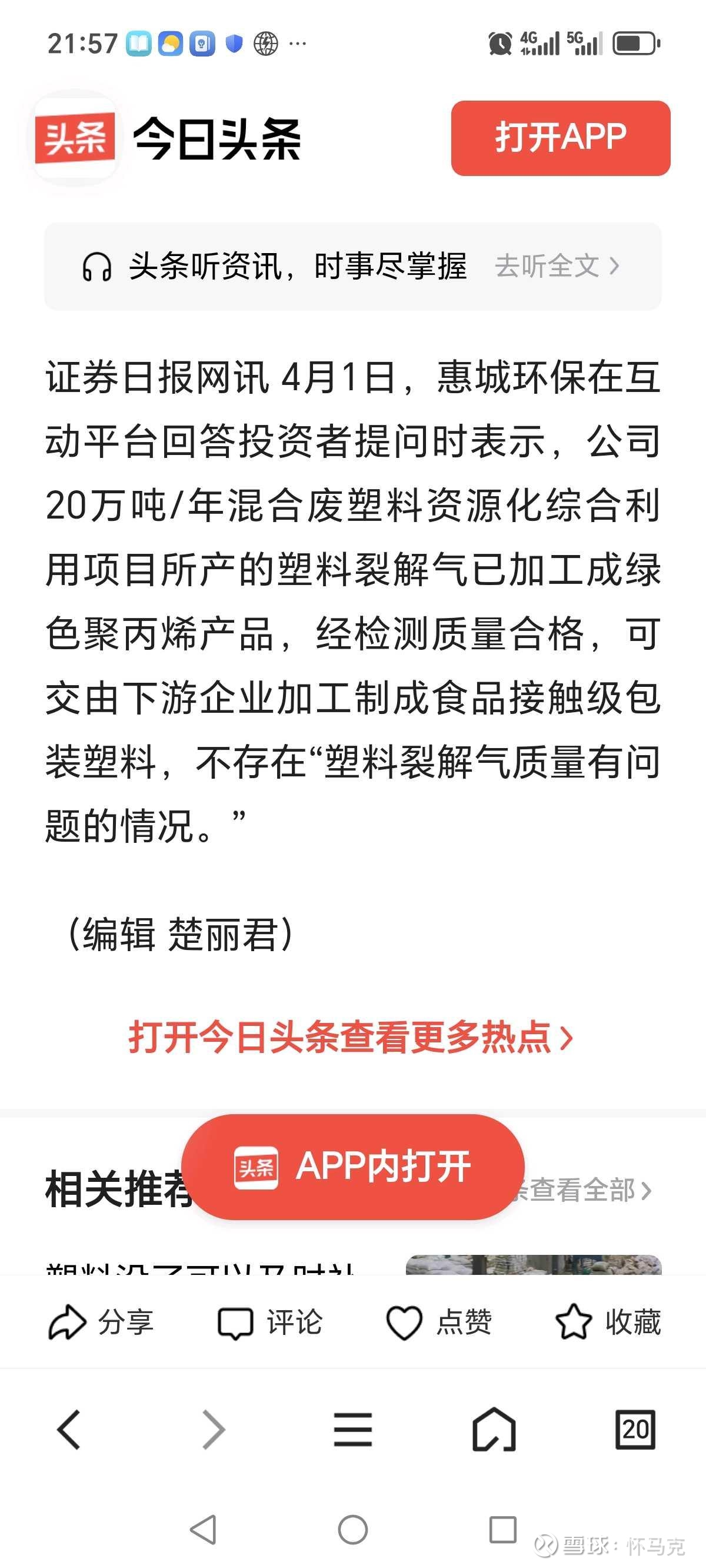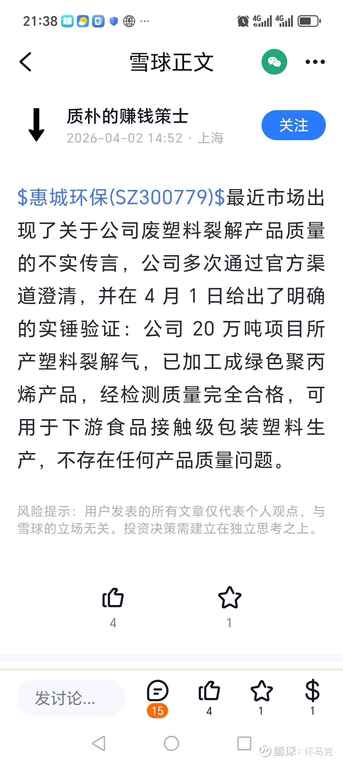 原帖说“拿理想实验室数据苛求工业化现实”,对此的反驳是完全颠倒黑白。质疑者从未拿实验室数据苛求工业,而是惠城环保自身将实验室小试数据直接当作20万吨量产业绩宣传,被戳穿后倒打一耙。实验室使用高纯度干净塑料原料,与工业端混杂、含杂质、含PVC的真实废料存在本质差异。公司直接把小试数据包装成20万吨量产业绩,未区分实验与工业化边界。20万吨项目长期开开停停,无连续稳定长周期运行记录,未达工业化量产标准。结论是这不是试错,是工艺未成熟就强行画饼,疑似违规扩产加信披误导。