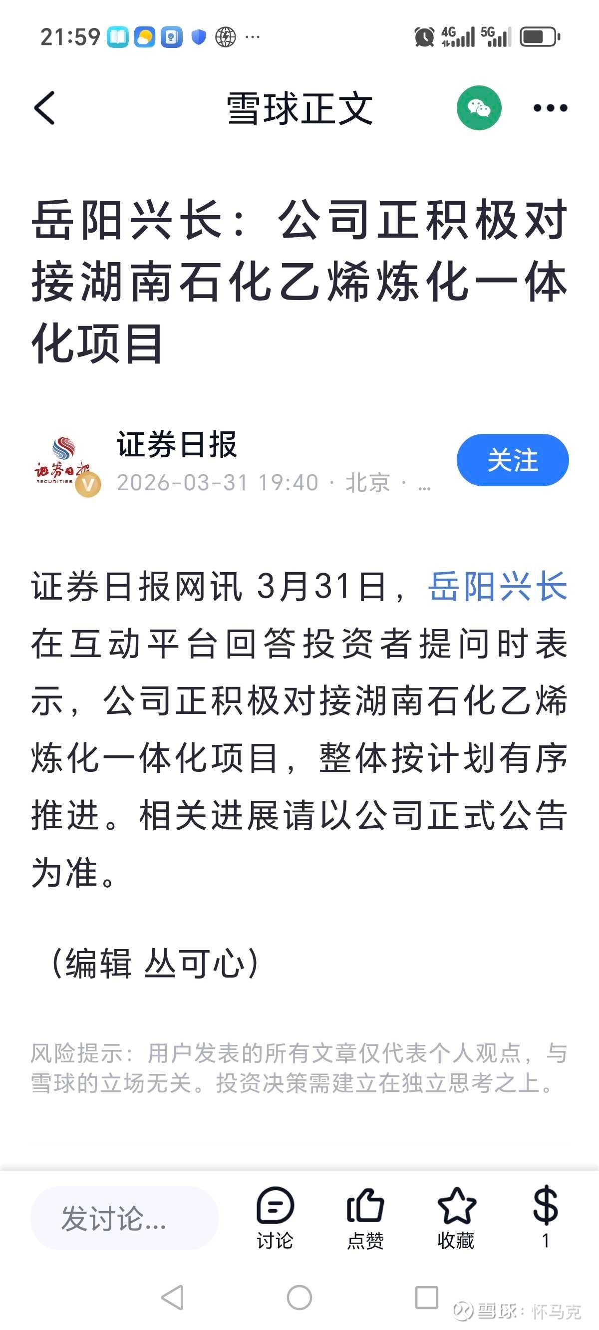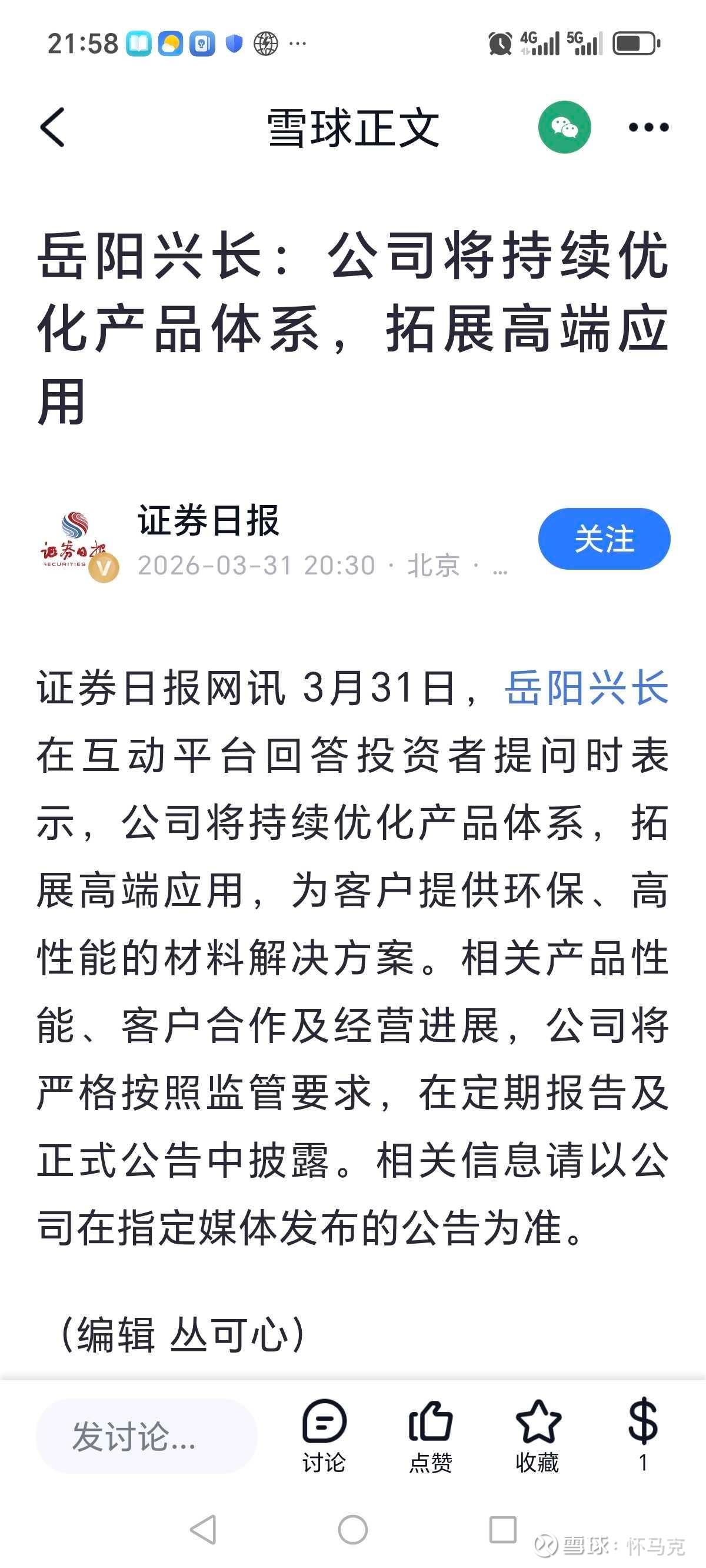 截图三同样来自岳阳兴长互动易内容,时间为2026年3月31日,核心为拓展高端应用并将在定期报告披露,属于常规经营表述,无实质合作数据、订单数量及落地证明,进一步印证所谓战略合作仅停留在框架层面,并无真实业务支撑,属于典型题材炒作。
