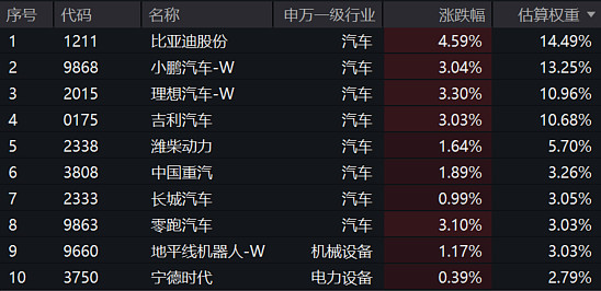 【港股通汽车ETF汇添富(159210)标的指数前十大成分股】