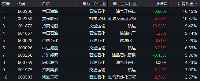 【油气ETF汇添富(159309)标的指数前十大成分股】