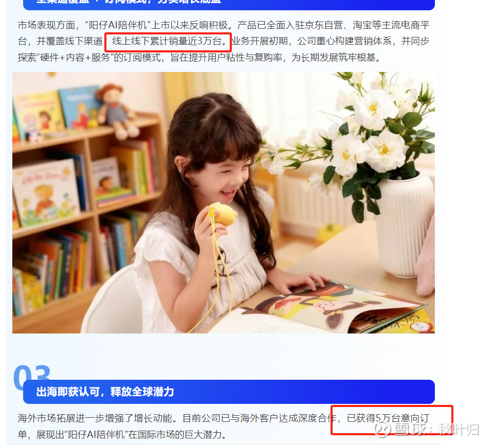 目前方直科技的AI玩具上线3个月,海内外销量已经超过8万台!非常火爆的数据!