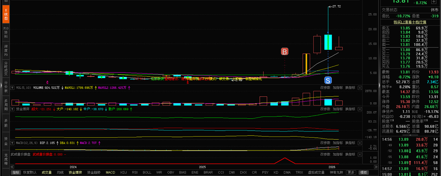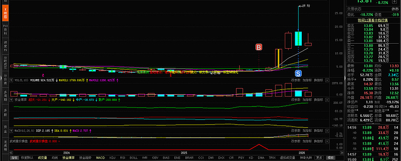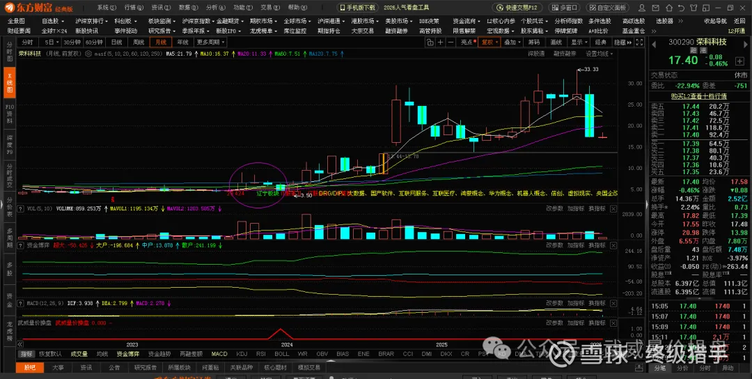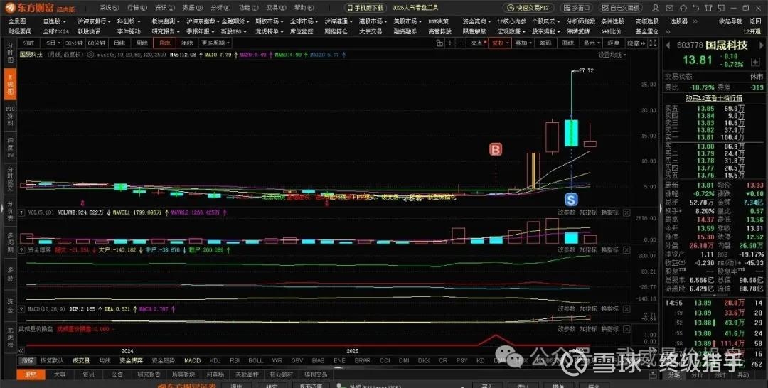 这种形态我只有在2023年 荣科科技的月K线图中见到过,2023年荣科科和2025年国晟科技月线量价具有完全相同的量价模型。荣科科技是从7元一路涨到了33.33元登顶,股价整整涨了530%,是当时2024年的最牛股。