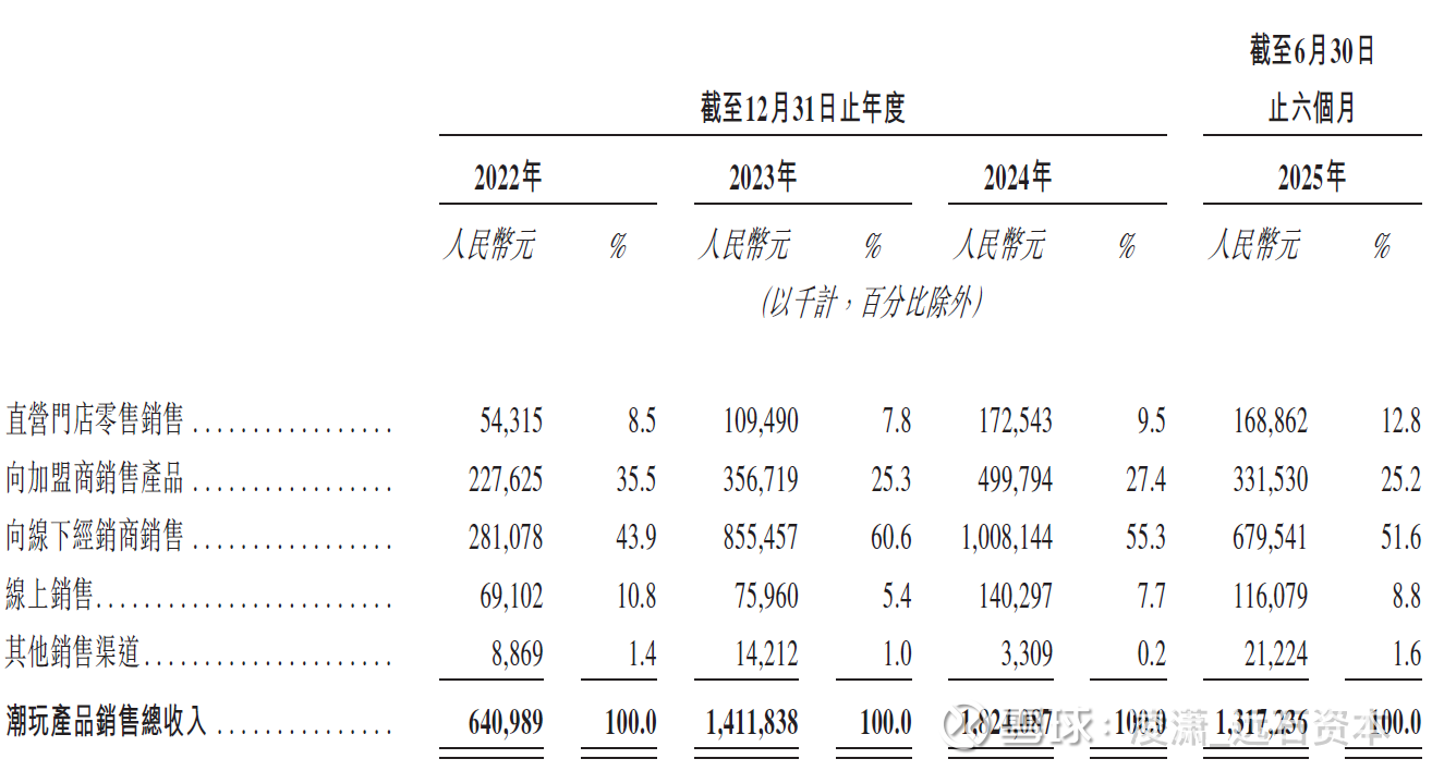 搪胶毛绒: 公司增速最快的品类。该品类收入由2023年的人民币1.1百万元 增加至2024年的人民币64百万元,并增加至2025年上半年的人民币146.3 百万元。例如,公司业绩记录期间的三丽鸥搪胶毛绒销售额超过人民币 168百万元。