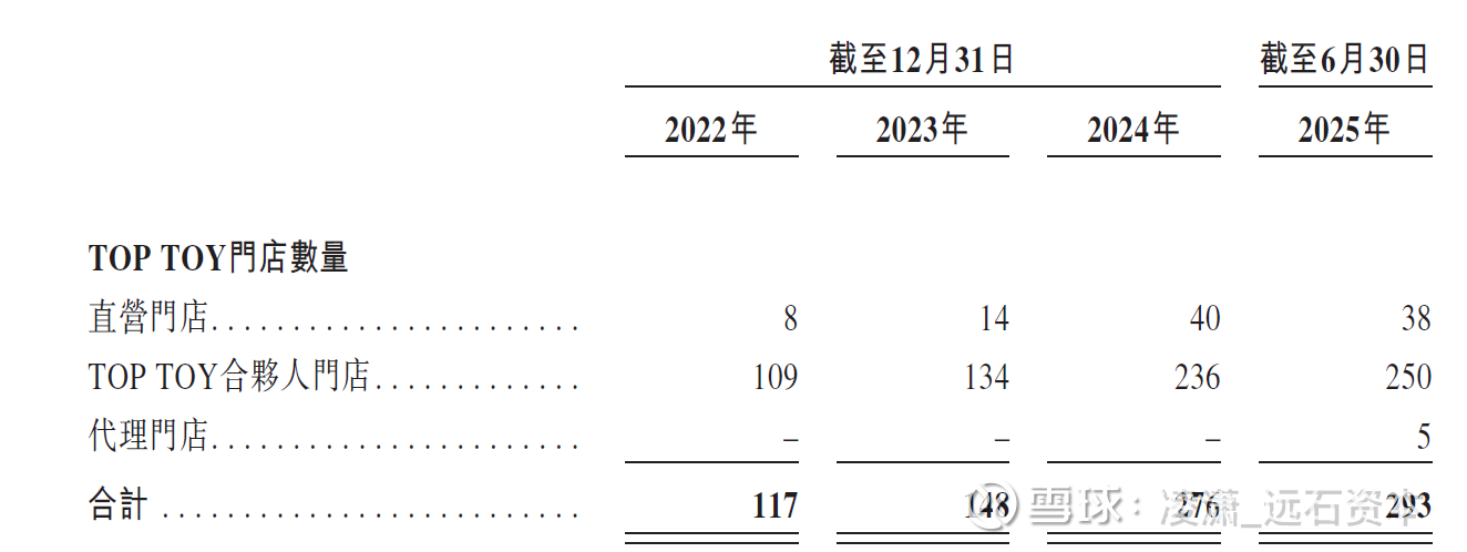 截至2025年6月30日,公司直营门店38家,Top Toy合伙人加盟门店250家。其中海外门店15家。