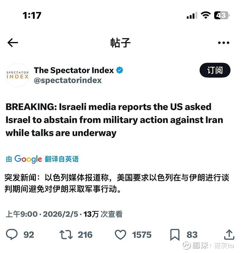 $石化油服(SH600871)$ Israeli media reports the US asked Israel to abstain from military action against Iran while talks are underway以这么急吗$德石股份(SZ301158)$$通源石油(SZ300164)$