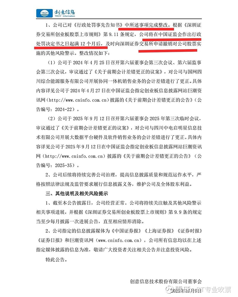 公司已经完成整改,行政处罚决定书出具后12个月申请摘帽