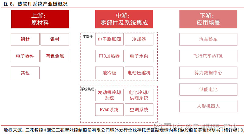 下游涵盖了广泛的应用场景,除了空调,汽车整车及飞行汽车eVTOL之外,在算力数据中心、储能电池以及人形机器人等场景也具备应用潜力。