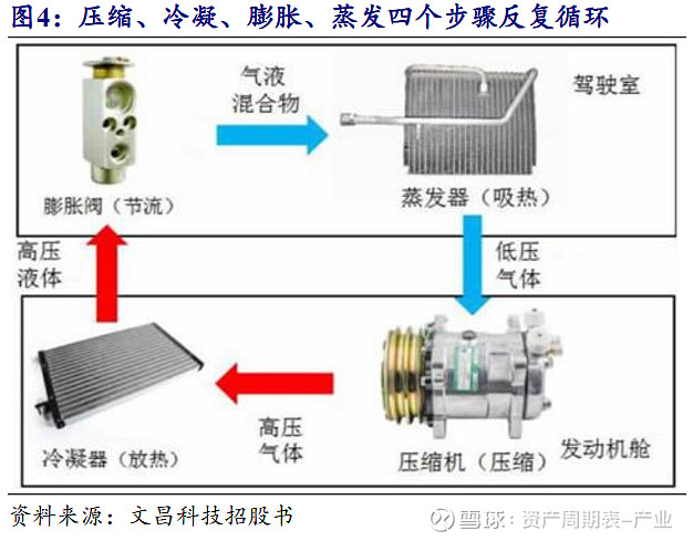 其中,压缩机、冷凝器、膨胀阀和蒸发器被称为热管理系统的 “四大件”。