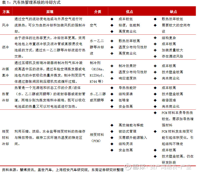 根据介质的不同,汽车热管理中的冷却方式大致可分为:风冷、液冷、冷媒直冷、热管冷却、相变材料冷却等。