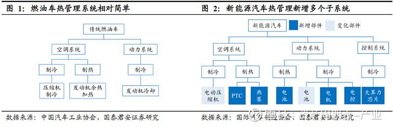 由于缺少了传统发动机(内燃机)的自发热特性,加上动力电池在特定环境下需要加热来获得合适的工况温度,热管理系统相较于传统燃油车的热管理系统更为复杂。