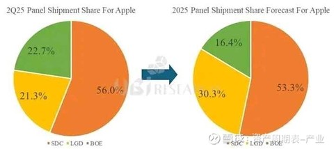 第一次进入高端Pro系列的供应链,算是国产面板产业的一个里程碑。京东方这波操作,直接把三星和LG在iPhone高端屏幕的份额从90%+拉到75%左右,自己单独拿下25%。