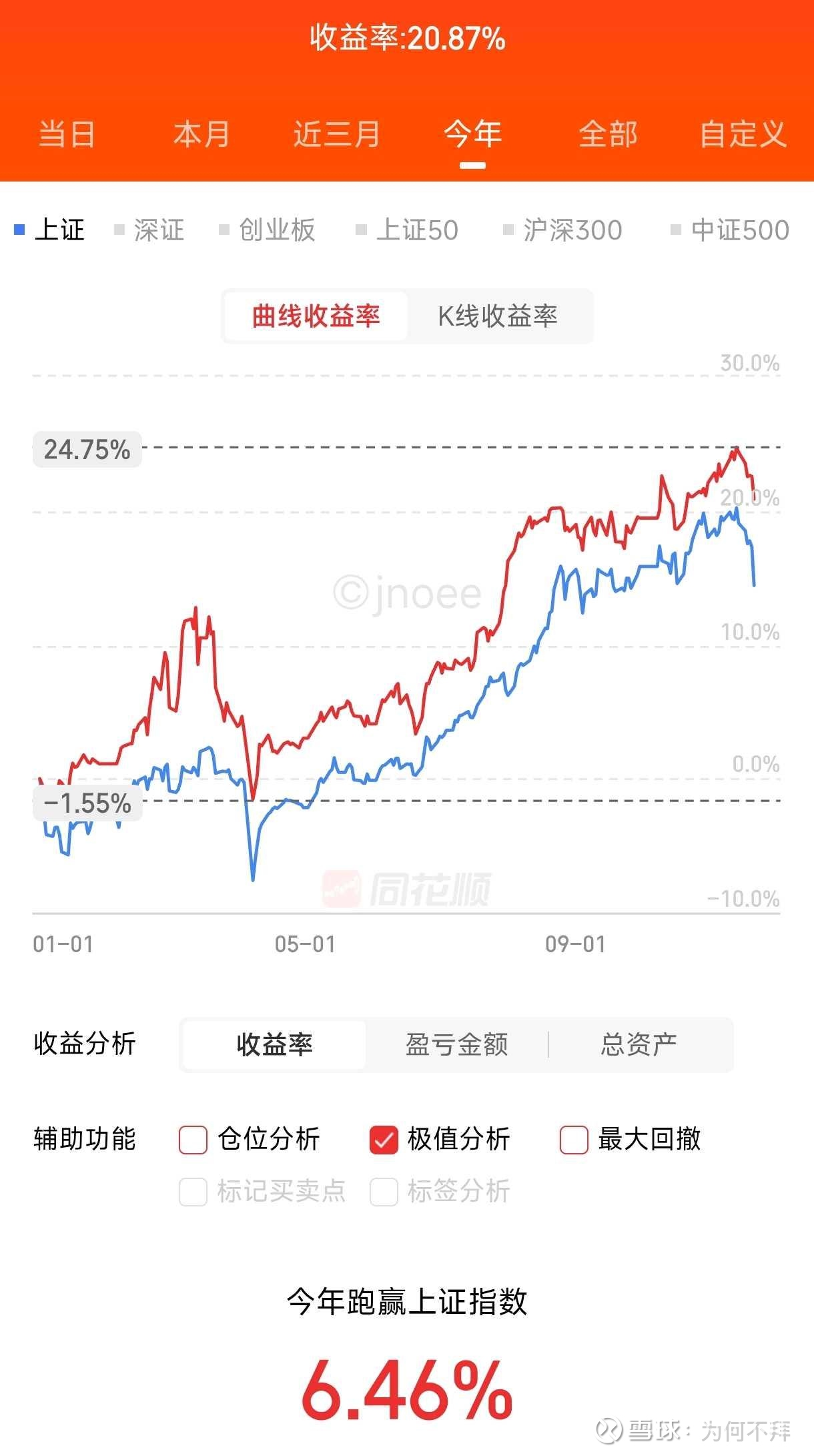 跌 1.38%,仓位 94%。清仓中环、泰瑞,这两只价格较高。清仓天壕,溢价率超 20% 了。减仓金浦、煜邦、武进,买入翔丰,加仓维尔。主要是调仓,仓位还是挺高的。可能是我买了机器人和人工智能 ETF,直接把大盘买崩了…唯一股票华民股份 8 连跌,上一周涨幅全部消灭还倒贴了。大盘暴跌,但是放量 2600 亿,说明抵抗力量还是有的。今天这一跌,直接破位了,牛市还在不在成了个问号。