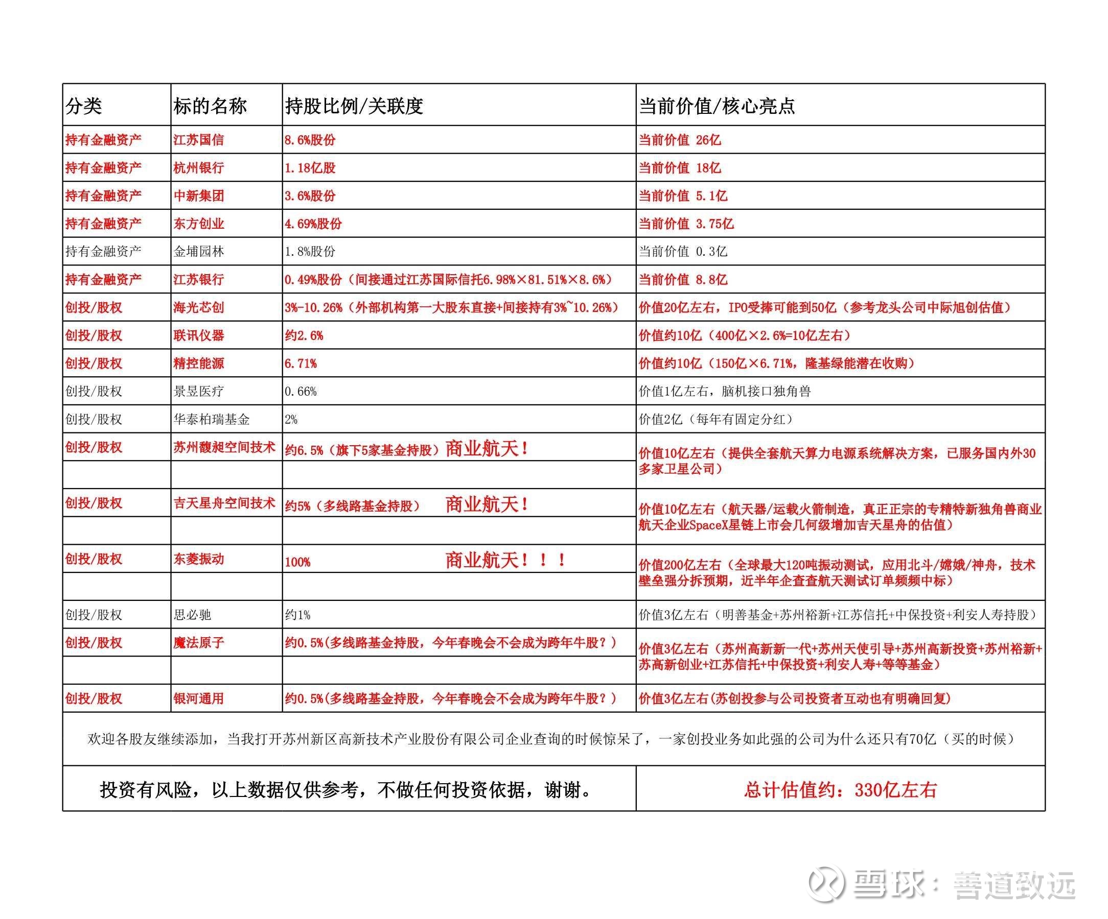 苏州高新是全网唯一一家同时间接持有魔法原子+银河通用+松延动力三家人形机器人公司,至于有人说还间接持有宇树科技但是我没有具体查到。在这次人形机器人板块大幅暴涨走强的时期苏州高新是有补涨龙潜质的,可适当重点关注这只低位补涨标。另外公司还有3家商业航天公司,其中东菱振动100%全资控股,再来就是CPO硅光模块独角兽海光芯正香港IPO上市,还有一家也是近期火热的太空光伏企业精控能源是其第二大股东,目前隆基绿能酝酿收购精控能源以应对竞争对手阳光电源的施压。最后还有很多公司股份,光持有的金融资产超过50亿。总之苏州高新是家干实事,正在积极转型科技创新的国企,一身好功夫正在开花绽放。期待有缘的大游资看中翻涨5倍,打造马年标杆妖股,谢谢。祝大家新年顺顺利利,马年吉祥,万事如意,一路长虹。查看图片