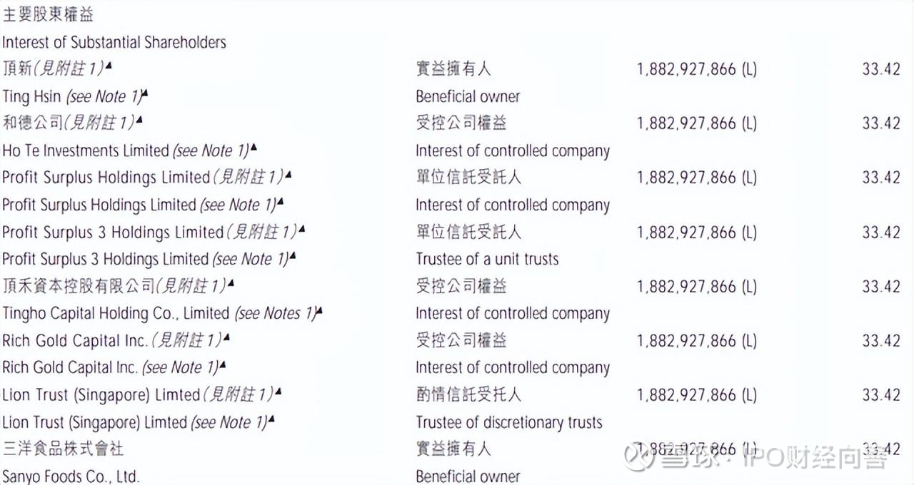 更关键的是,从股权结构上看,分红绝大部分都被大股东拿走了,具体来看,顶新(开曼岛)控股有限公司(创始人家族公司)占比33.42%,日本三洋食品株式会社持有33.42%。