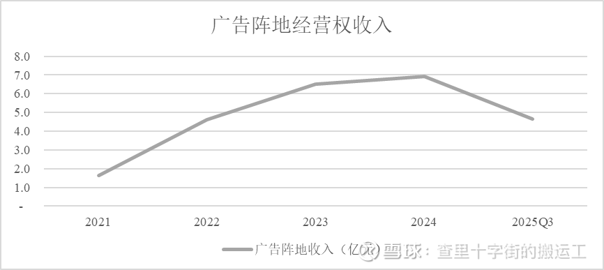 今年1-9月,公司广告阵地经营权转让收入4.67亿元,仅占营业收入4.8%。