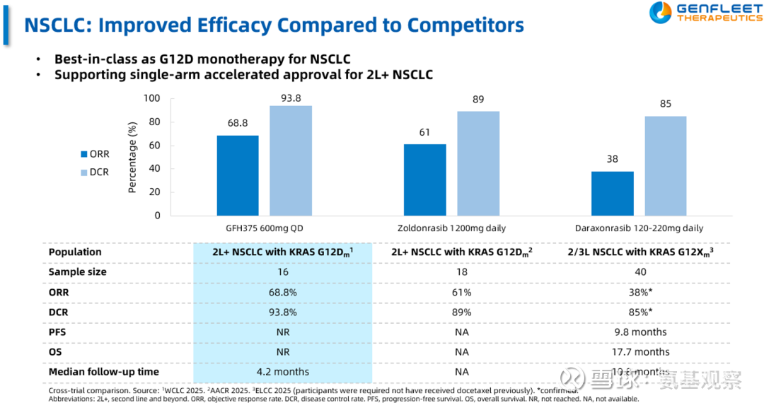 更具竞争力的是,GFH375的2期推荐剂量比多个国内外G12D抑制剂更低,这意味着在药物经济学层面,它比同类产品更有成本优势。
