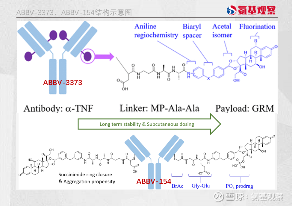 其中,ABBV-3373 以阿达木单抗为抗体骨架,连接糖皮质激素受体调节剂作为有效载荷,旨在将抗炎效应直接传递给活化的免疫细胞。
