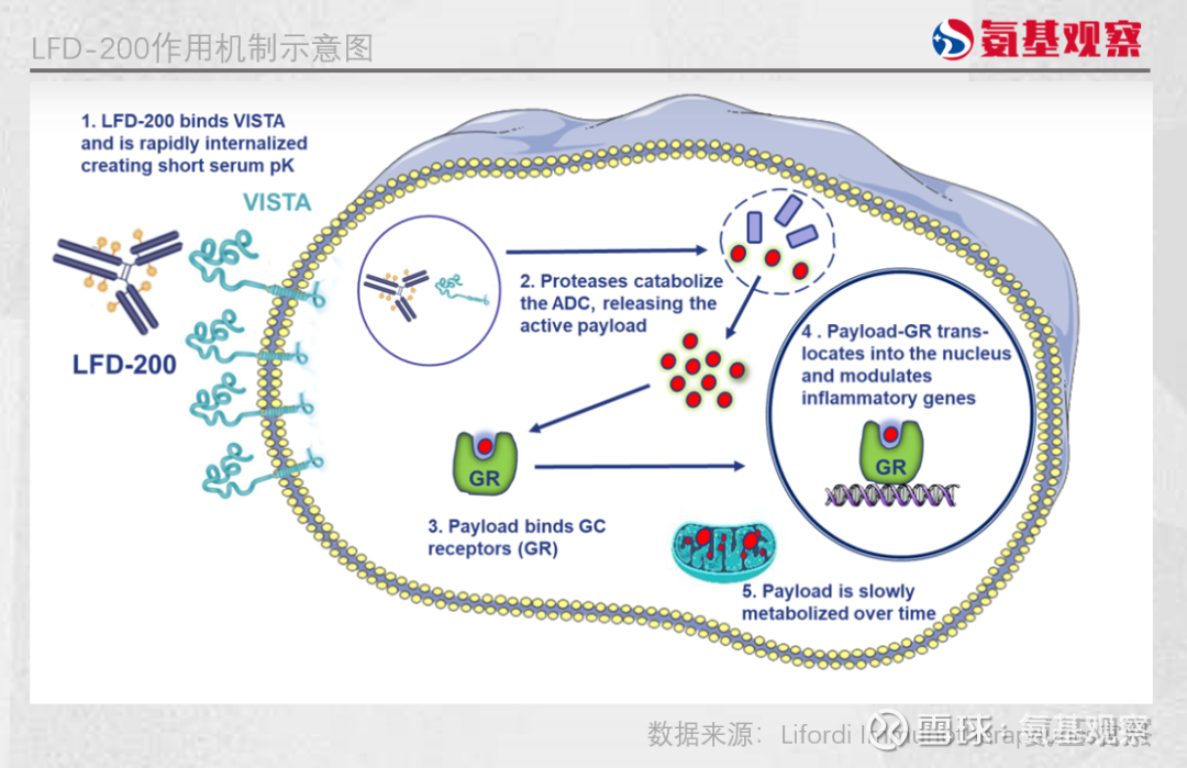 Lifordi则代表了另一种思路,其自免ADC药物LFD-200靶向VISTA。VISTA是一种在免疫细胞上特异性表达的细胞表面蛋白,被抗体结合后可快速内吞和细胞内积累,有助于ADC载荷高效进入靶细胞,同时降低脱靶毒性。