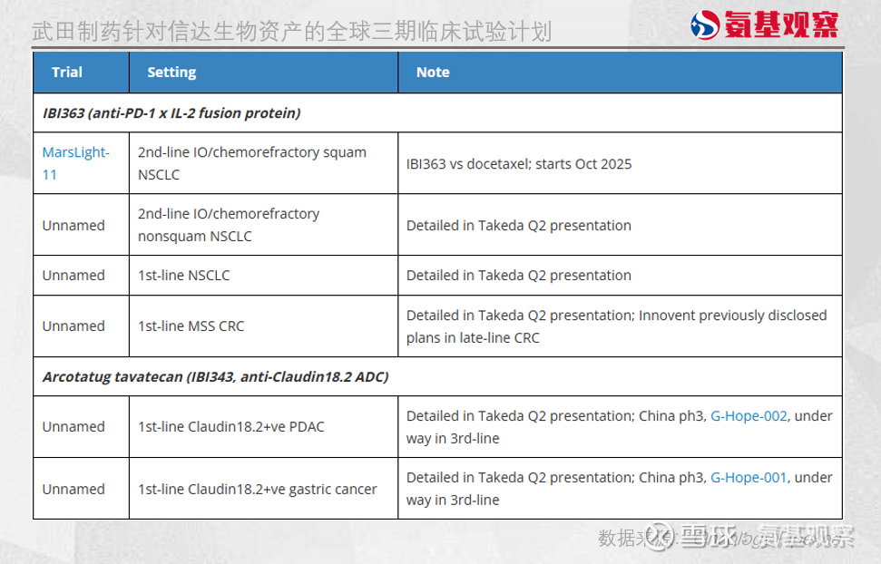 最近的JPM大会上,武田展示的用于对抗专利到期冲击的8个后期核心资产中,肿瘤领域的管线除了Elritercept,便是来自信达生物的IBI363、IBI343。可以说这是武田肿瘤“重要的希望”。