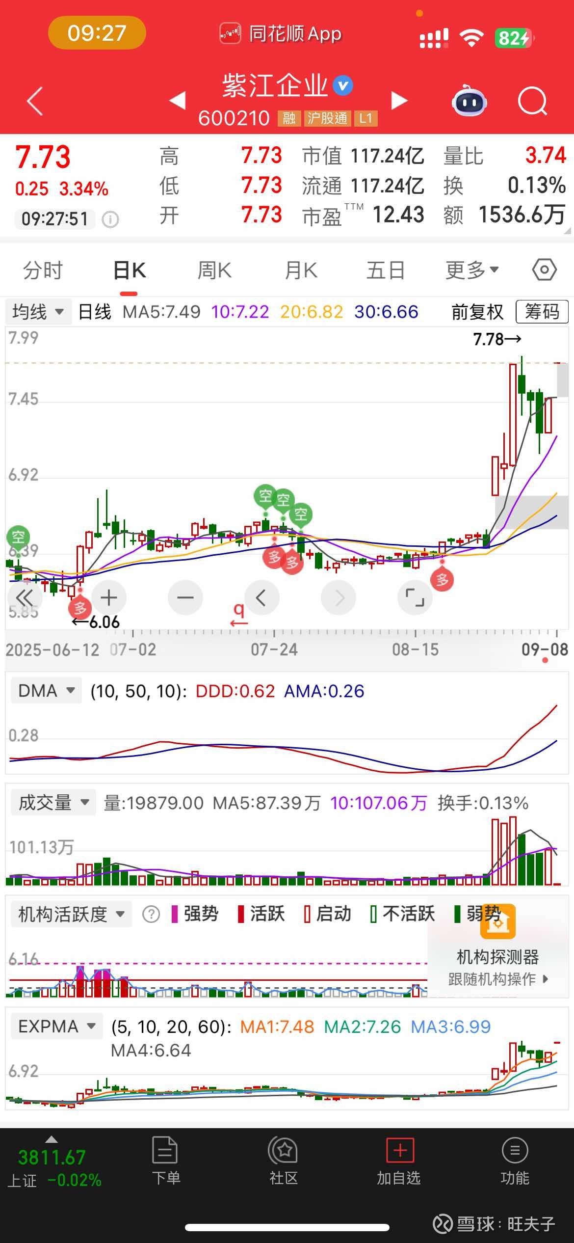 9月8日:5000只选一只600210紫江股份