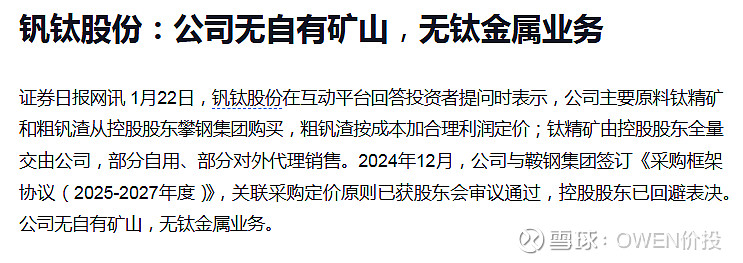 自己都在澄清了,你们还往钒钛冲。要买钛精矿、钛材,应该好好看看