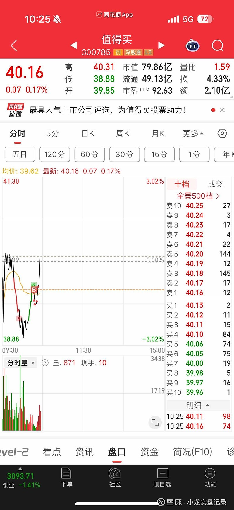 $值得买(SZ300785)$
