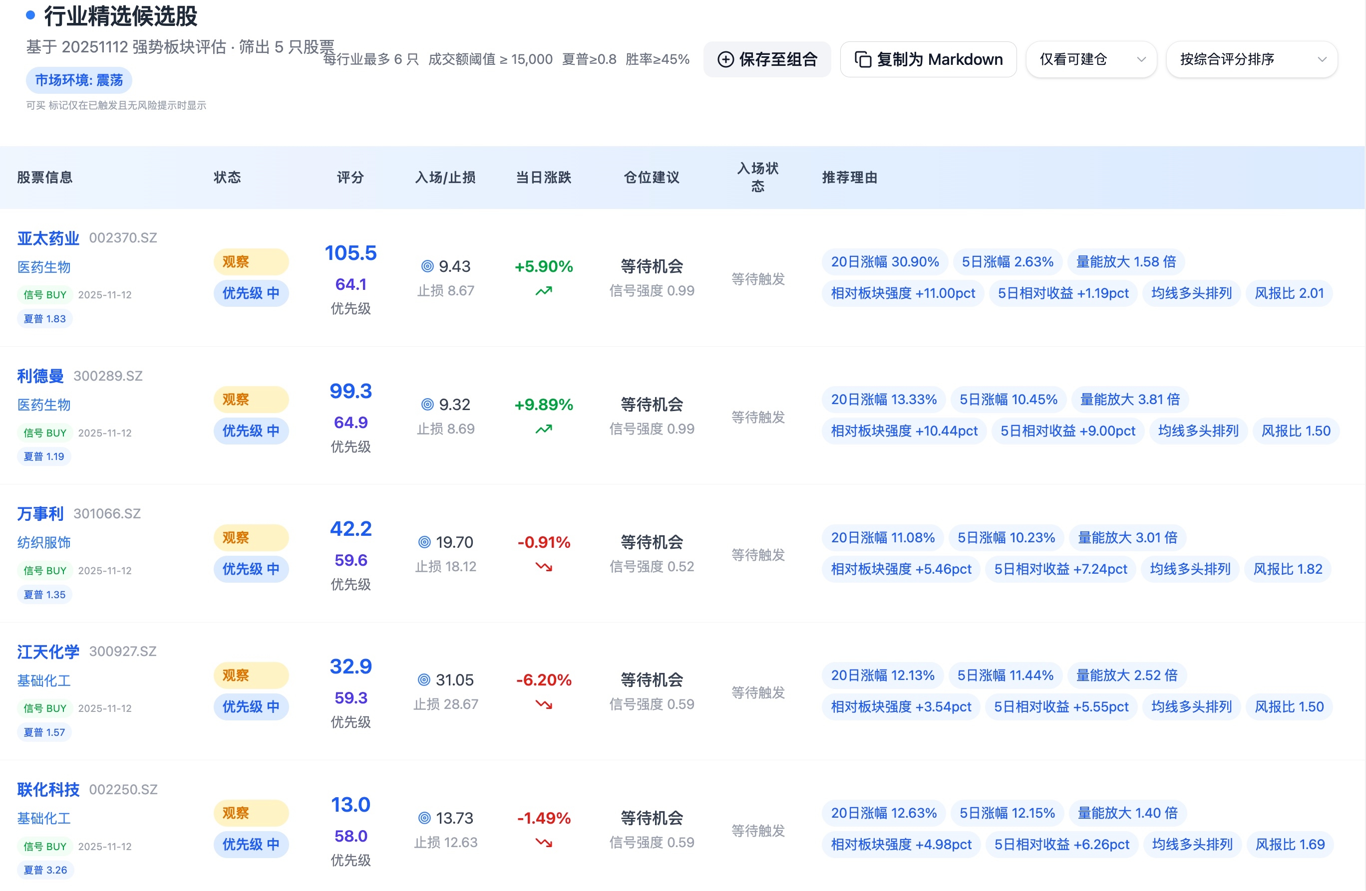 二、行业精选候选股榜单(基于20251112模型评分)