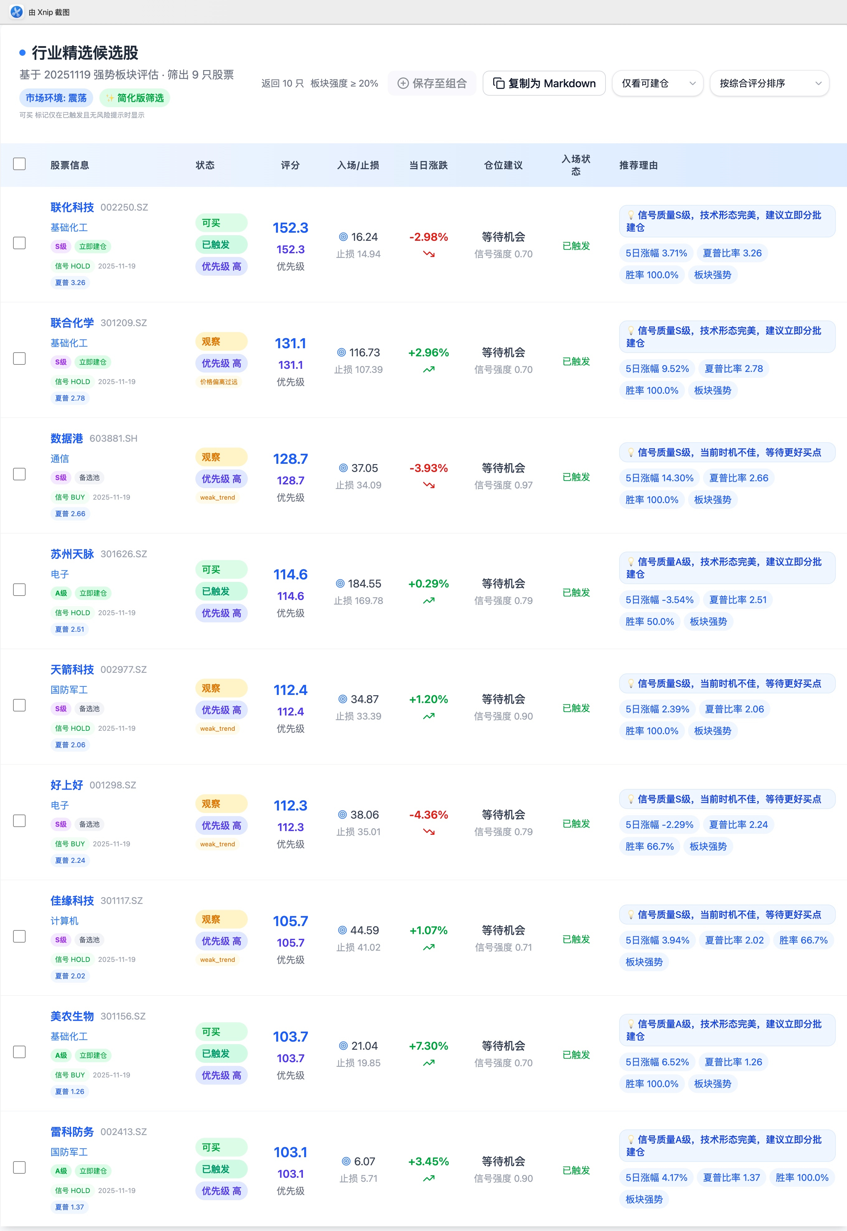 关注区(待触发):联合化学(待满足可买条件)、数据港、好上好、天箭科技 —— 观察缩量回踩后的放量反包或颈线突破。