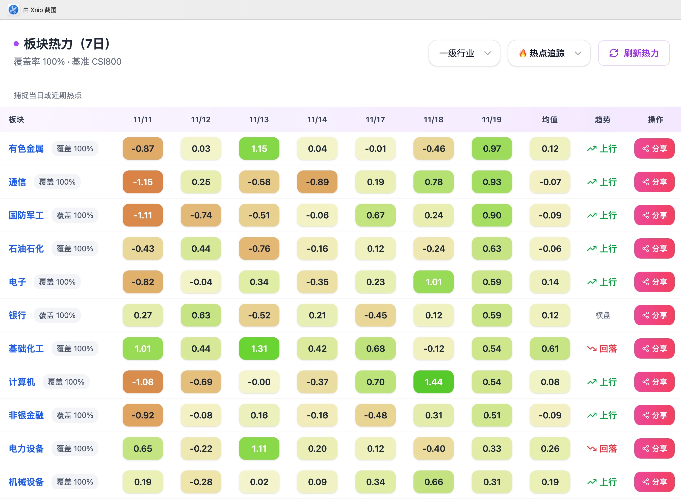 有色金属、通信、电子:整体抬升,成为本期进攻与弹性来源。
