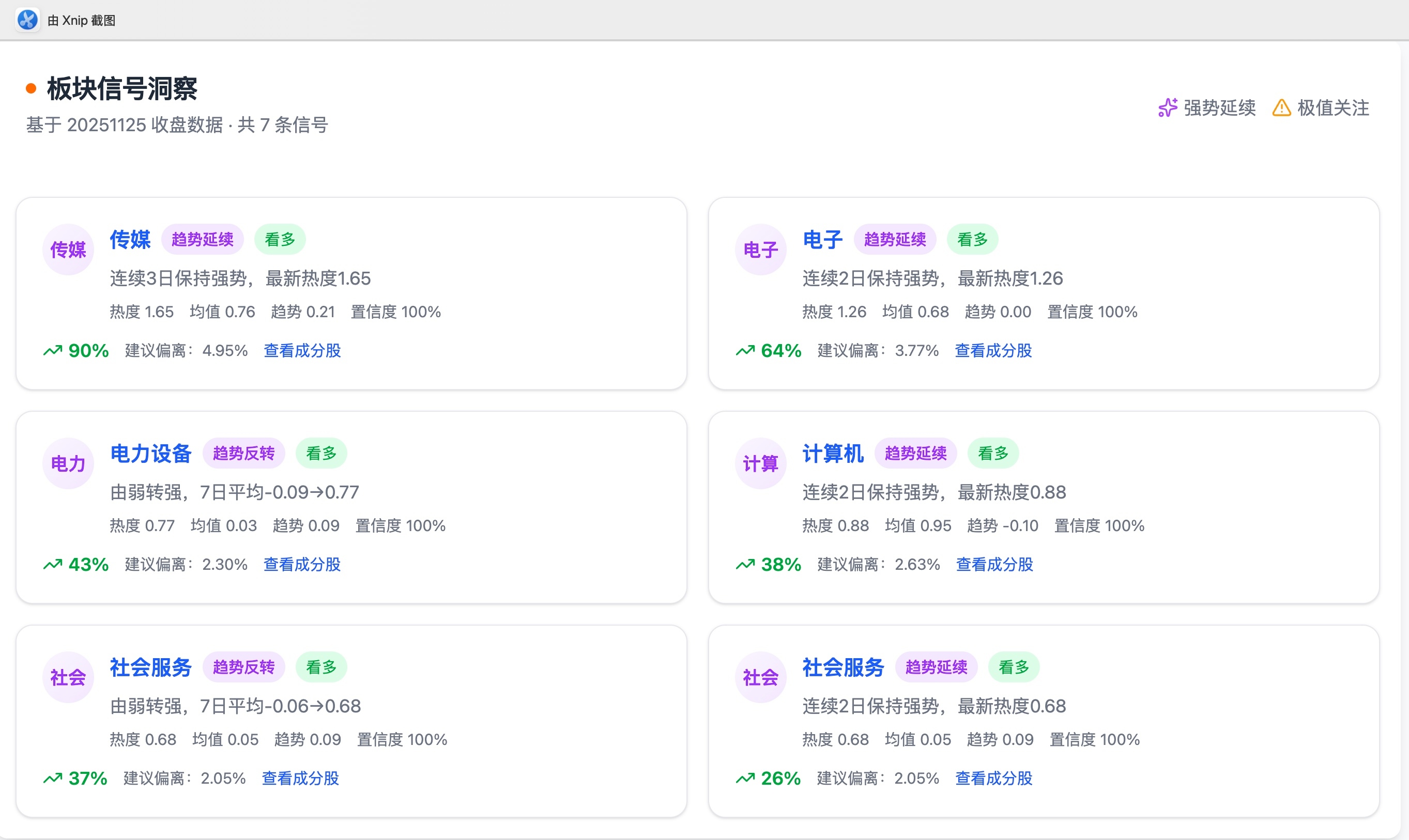 电力设备 / 社会服务:信号显示反转向上,承接力决定延续性。