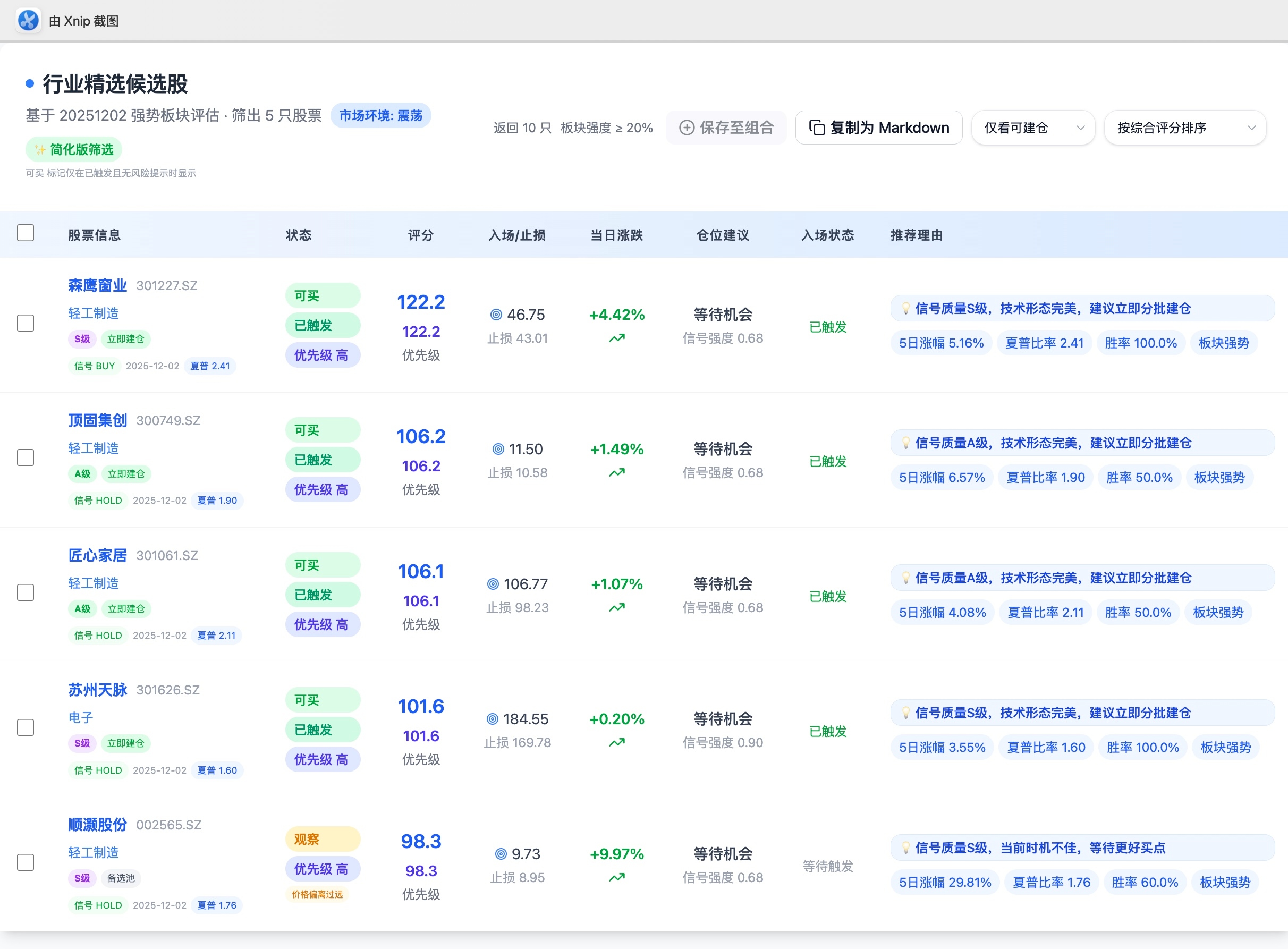 二、行业精选候选股榜单(基于 20251202 模型评分)