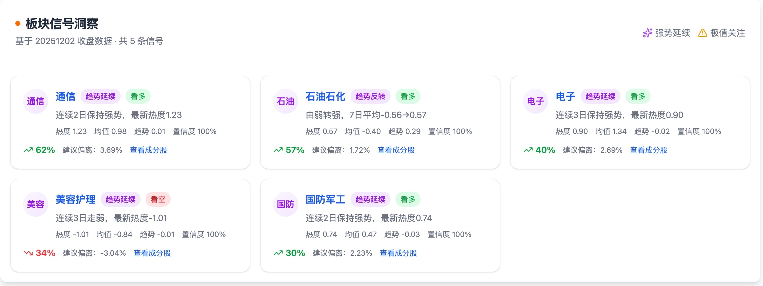 三、板块信号洞察(基于 20251202 收盘,精简版)