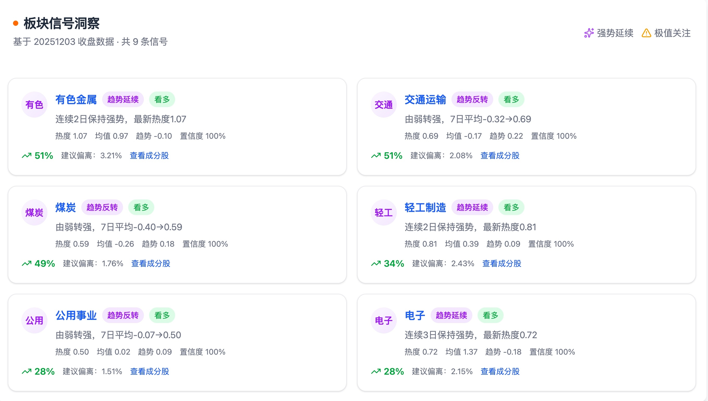 三、板块信号洞察(基于 20251203 收盘,精简版)