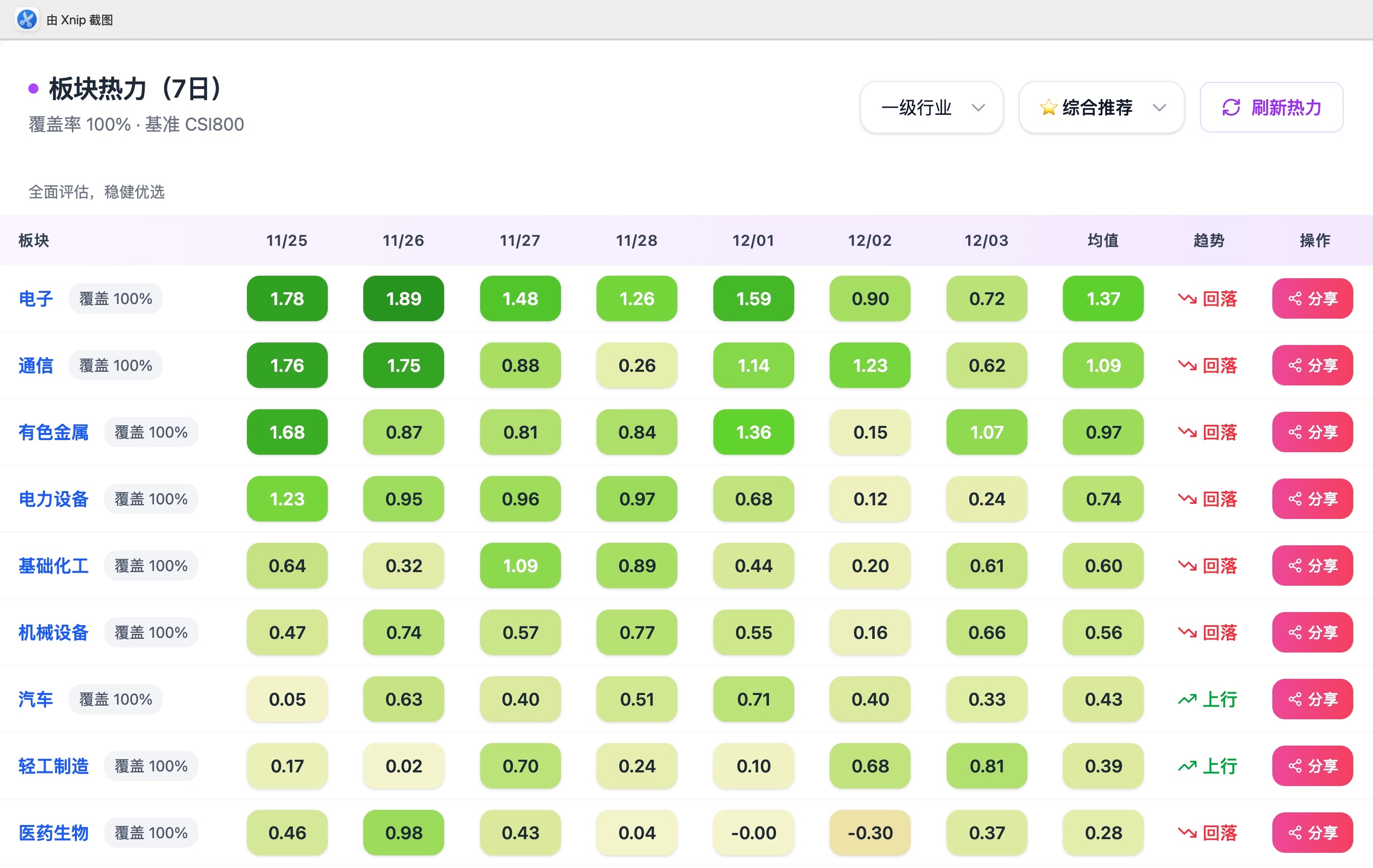 四、板块热度趋势(近 7 日)
