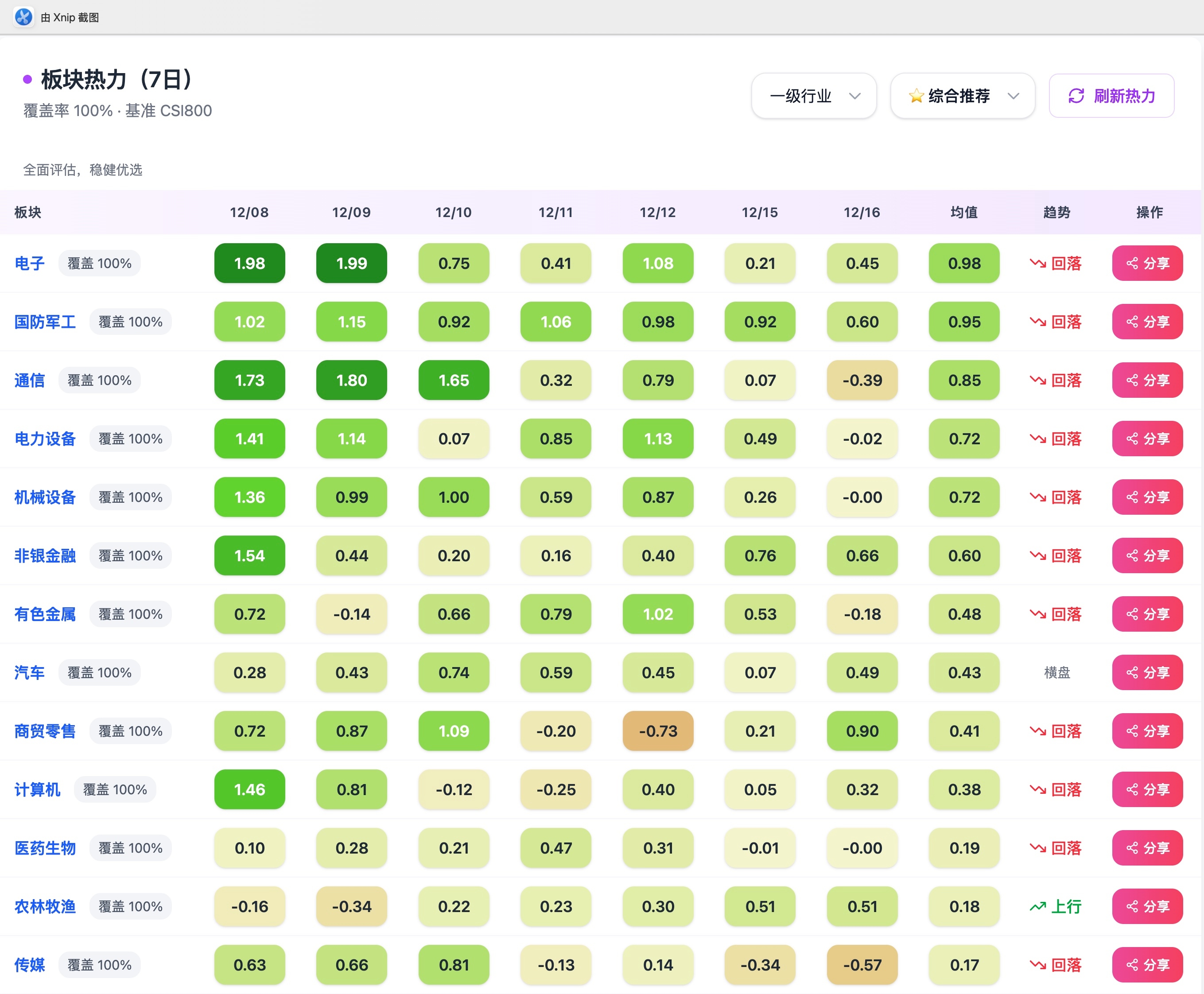 近7日热力矩阵显示,市场进入了明显的“收缩期”。