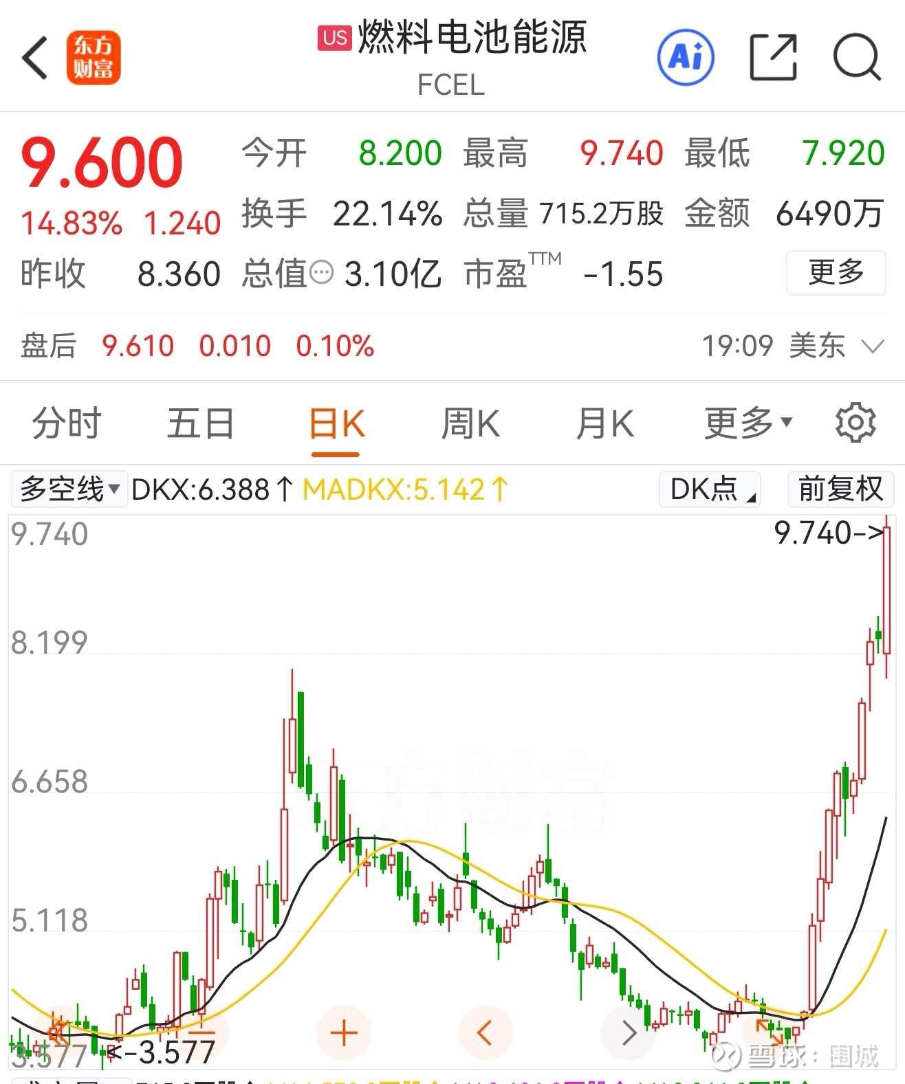 美锦能源:传统的焦化企业,转型布局氢能全产业链,从制氢(焦炉煤气副产氢)到投资燃料电池核心部件(国鸿氢能),再到运营加氢站和燃料电池车辆,布局非常全面。$普拉格能源(PLUG)$ $燃料电池能源(FCEL)$ $亿华通(02402)$