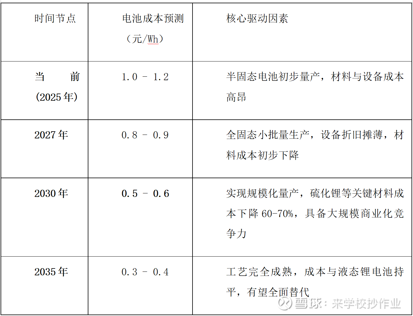我们预测,在材料与工艺双重突破下,固态电池成本将遵循以下路径下降: