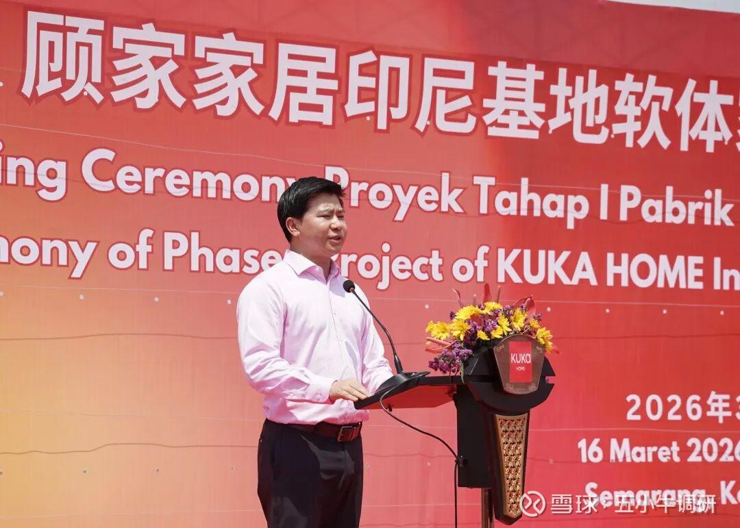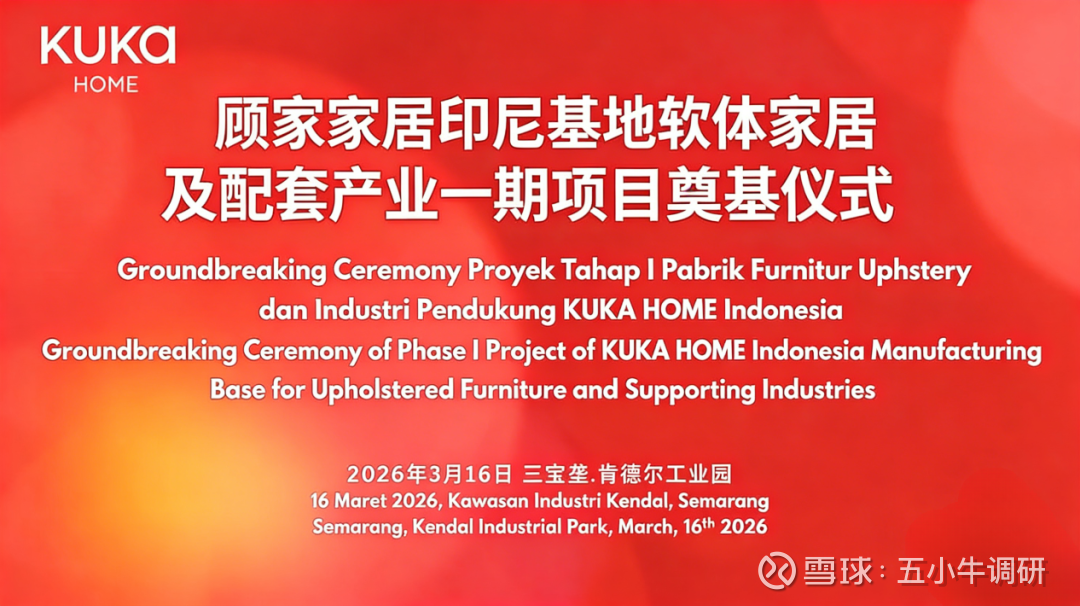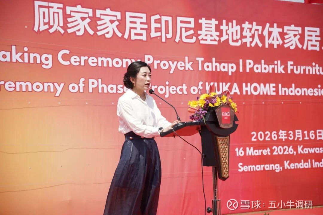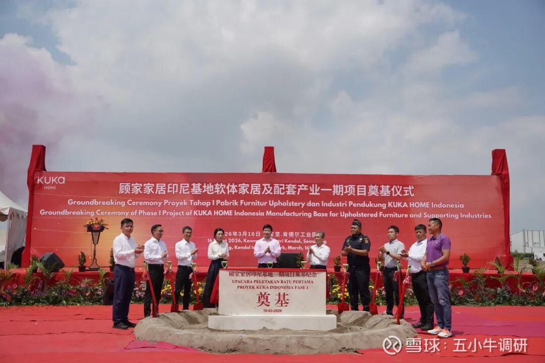 2026年3月16日,顾家家居(603816)股份有限公司于印度尼西亚三宝垄肯德尔工业园区举办印尼基地软体家居及配套产业一期项目奠基仪式。