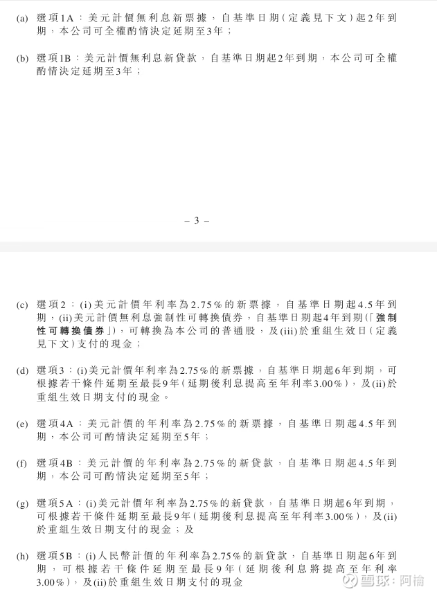2024年9月30日:公司公告称,将与AHG(此时持债比例为32.93%)共同修改重组方案。新方案大幅调整了原有的对价条款。