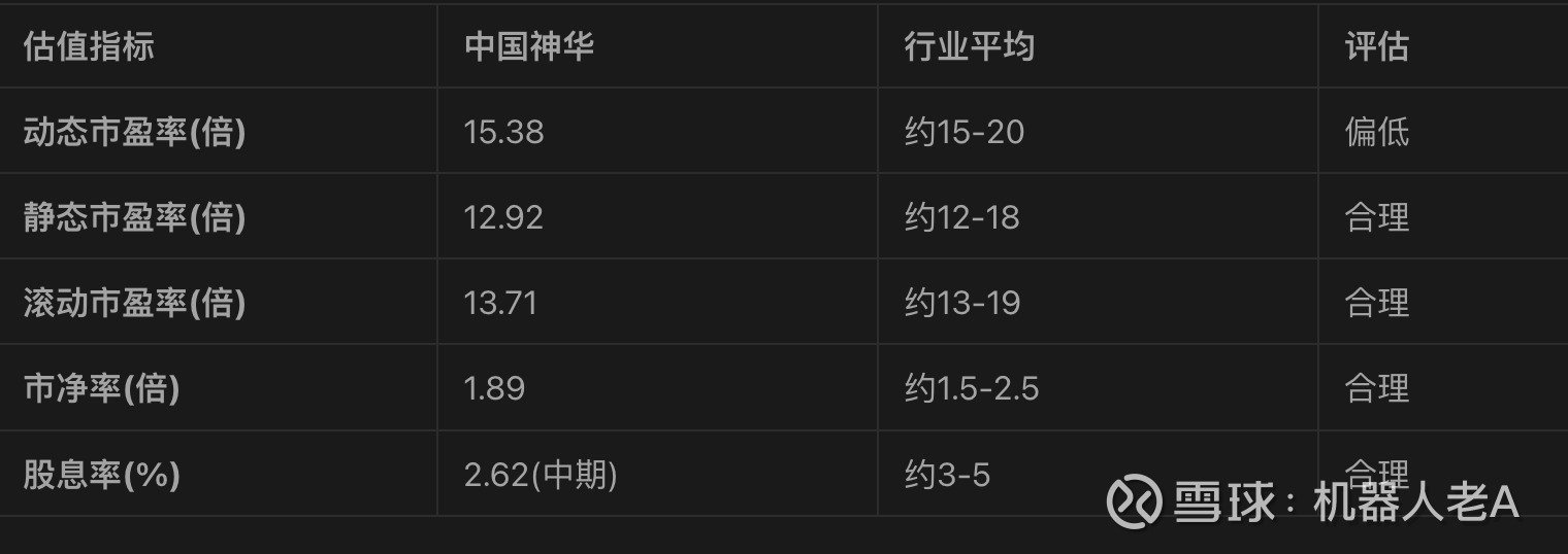 截至2025年9月2日收盘,中国神华A股股价报收38.16元,总市值7581.83亿元。基于2025年上半年业绩,公司动态市盈率为15.38倍。静态市盈率方面,根据2024年全年净利润计算为12.92倍,滚动市盈率为13.71倍。市净率为1.89倍。
