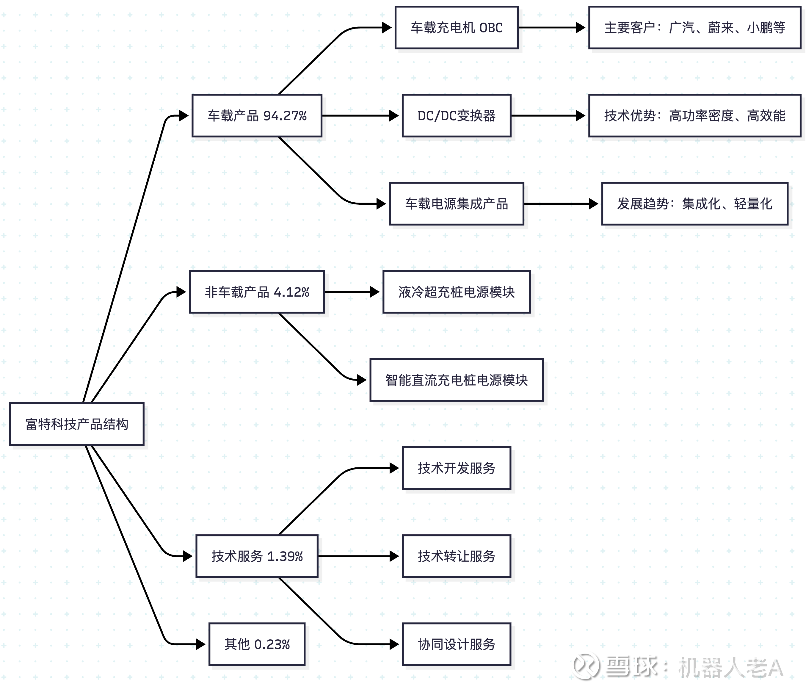 富特科技专注于新能源汽车高压电源系统的研发、生产和销售,主要产品包括车载充电机(OBC)、车载DC/DC变换器、车载电源集成产品以及液冷超充桩电源模块等非车载产品。公司产品广泛应用于电动汽车、插电式混合动力汽车等新能源车型,并与多家主流车企建立了稳定的合作关系。