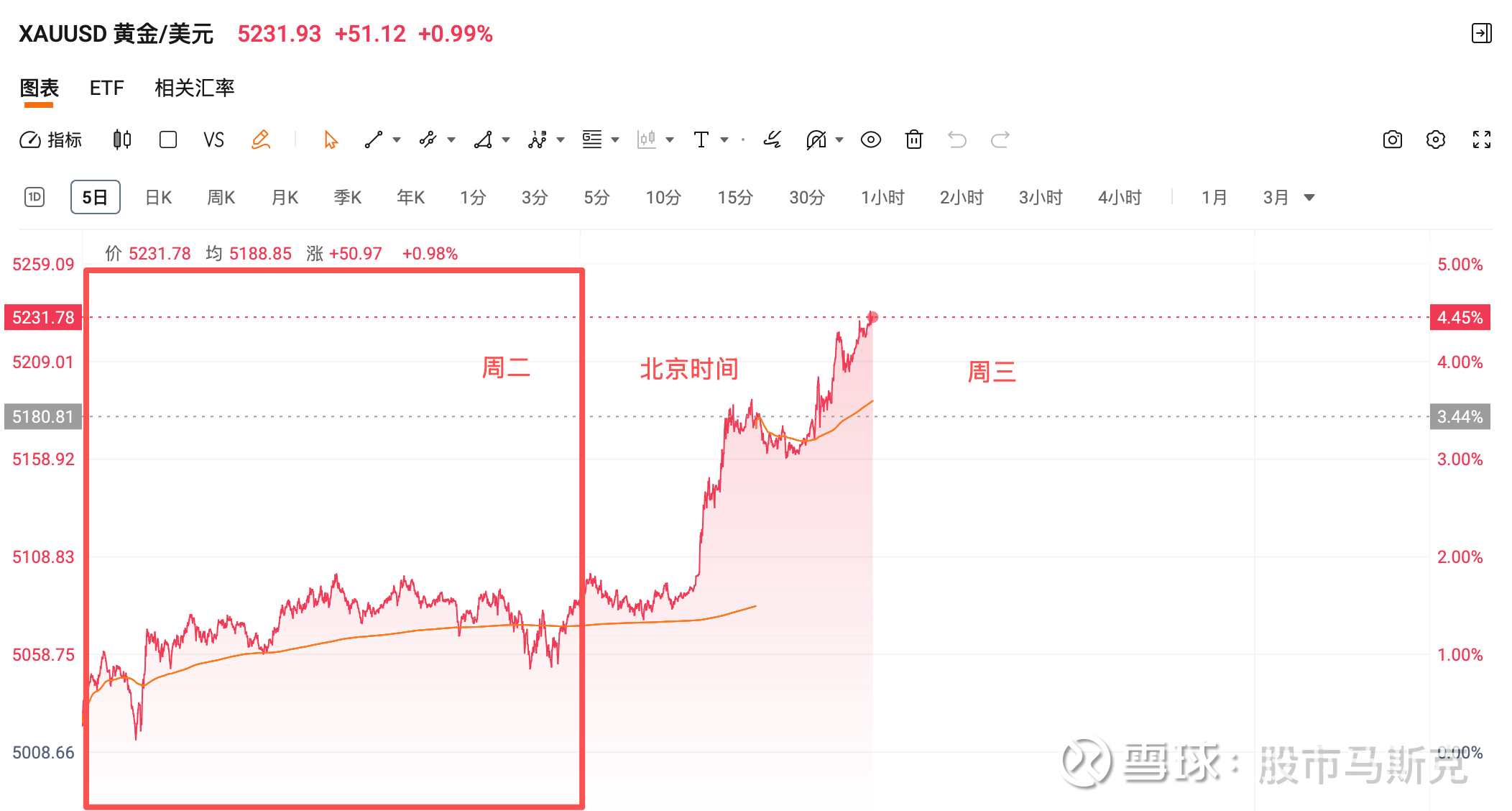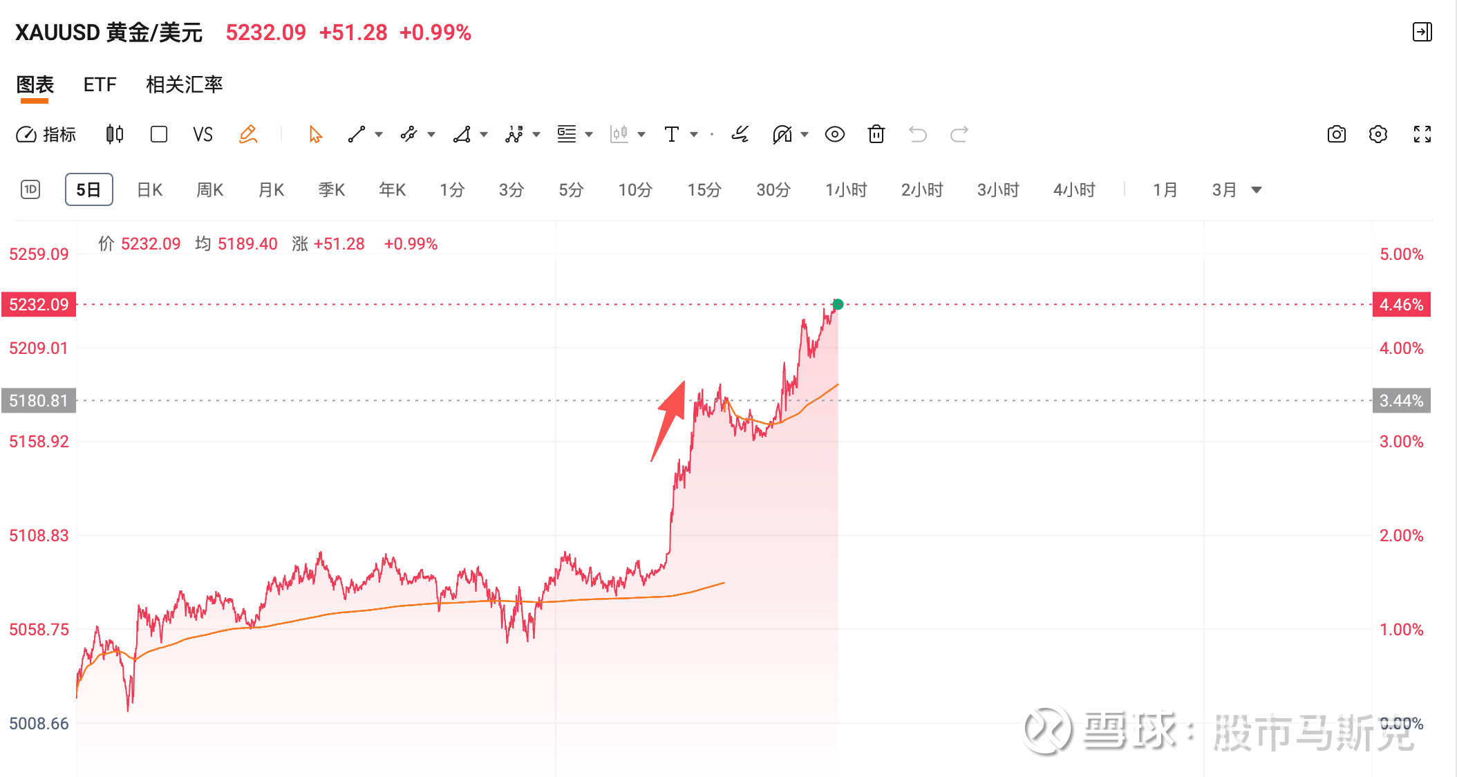 在这一信号的推动下,美元指数短线走低,黄金大幅拉升,直冲5200美元关口
