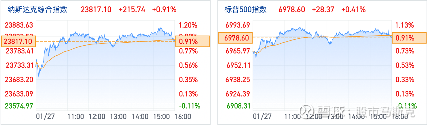 纳斯达克综合指数收涨0.91%,标普500指数收涨0.41%,道琼斯指数收跌0.83%