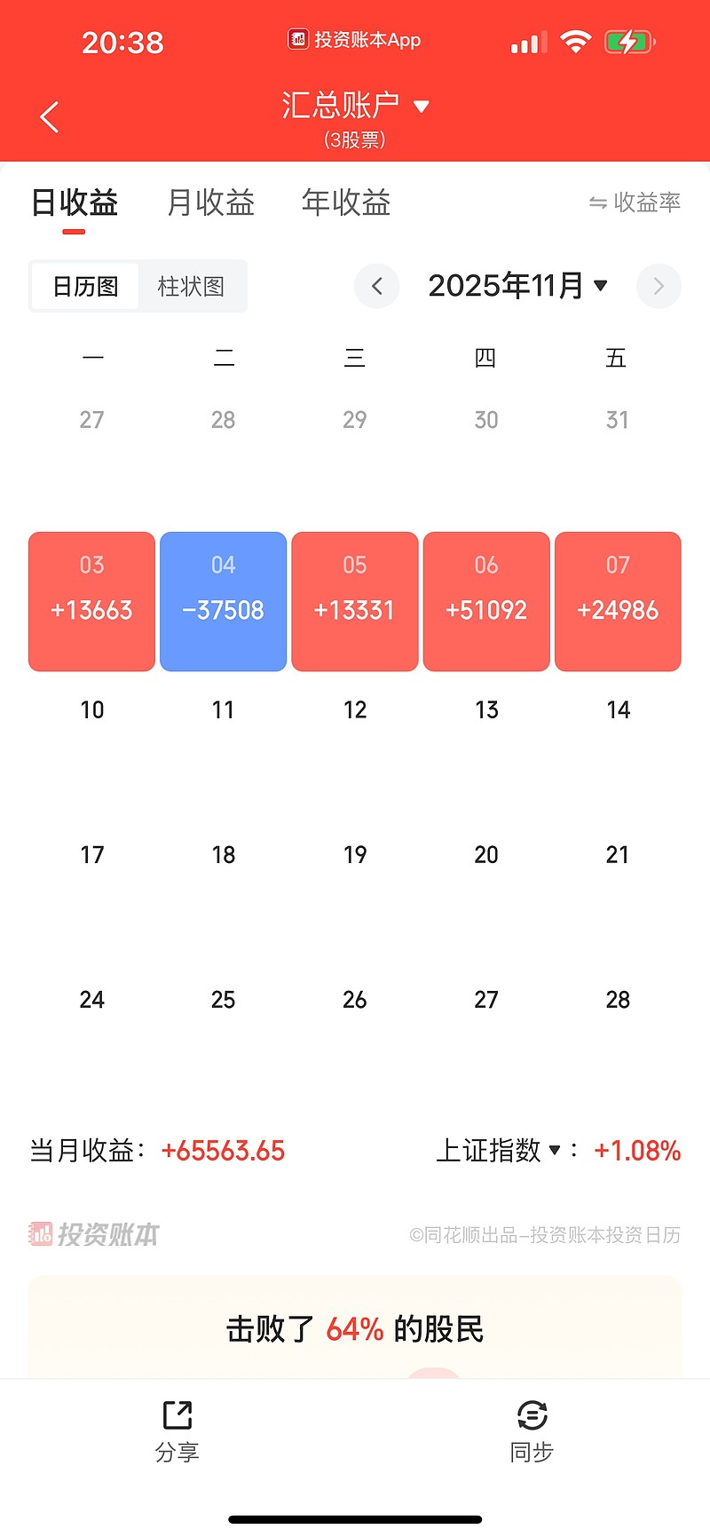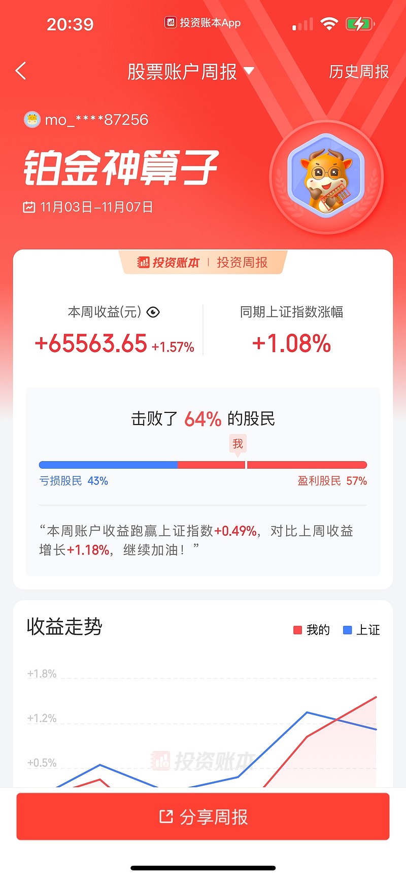 2025年第45周盈利6.5万,本周难得跑赢指数,系统显示击败64%的韭友,2025年截止目前盈利47.2万,盈利比例12.18%,仍然跑输7%,情况任然不是很乐观啊。