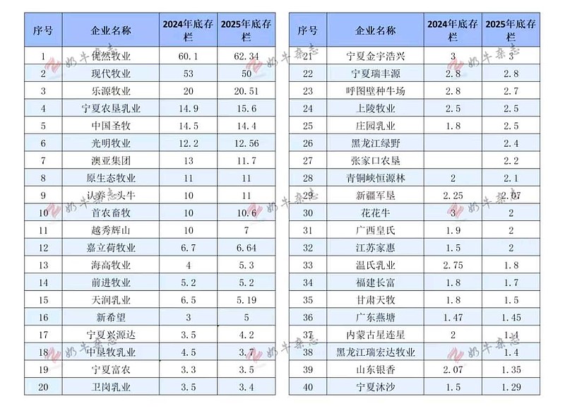 从以上统计表格可以看出,前40位集团牧场存栏数量约309万头,与去年相比(前40位集团牧场存栏数量约309万头),前40位集团牧场存栏没有变化。难怪生牛乳又跌了