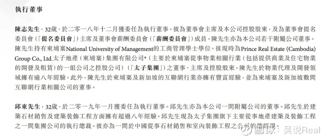 致浩达控股(01707.HK):原是一家香港本地工程承包商,2017 年 10 月上市。上市仅一年多后,原股东于 2018 年 12 月火速清仓退出,陈志接手全部股权,瞬间成为持股 54.79% 的绝对控股股东。入主当月陈志即出任执行董事,并引入其亲信、太子集团高管邱东共同担任董事。随后,公司业务开始 “柬埔寨化”,在维持香港工程主业同时,2019 年起拓展柬埔寨房地产开发,2023 年更介入奢侈品销售领域。陈志本人一度担任其奢侈品子公司董事,直至 2023 年中辞任。值得注意的是,即便今年 7 月陈志表面上辞去了致浩达职务,他控制的公司仍与致浩达有业务往来,例如致浩达承认为陈志旗下公司所持有的香港物业提供物管服务,且公司现金曾存放于陈志控股的太子银行。这说明陈志与上市公司的资金关联并未完全切割。