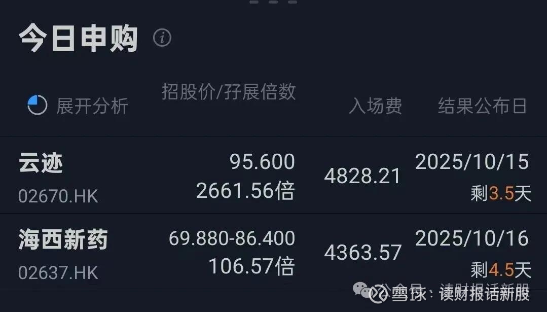 不利的一面就来了:在新股截止剩下3.5天下,按照这样的孖展上涨速度下去,云迹的中签率没有之前预估的高罗,不过性价上,依然是很好的